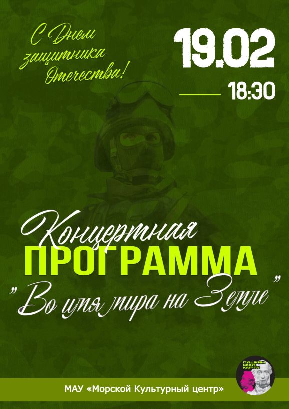 Мы отдаём дань уважения всем, кто стоял и стоит на страже мира и безопасности нашей страны и приглашаем на концертную программу «Во имя мира на Земле», посвящённую Дню защитника Отечества!